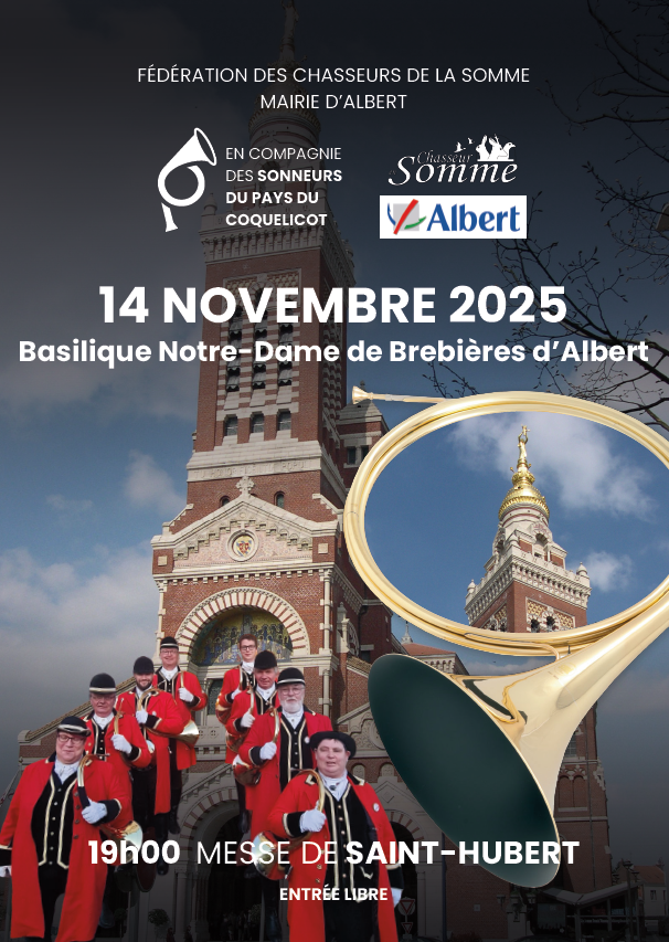 Messe de la saint Hubert Vendredi 14 novembre 2025 à 19h – Basilique Notre-Dame de Brebières Entrée libre Date 14 Nov 2025 Heure 19h00 Lieu Basilique Notre-Dame de Brebières Organisateur Fédération des Chasseurs de la Somme Partagez cet événement